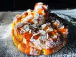 Pečemo na 180°C približno 35 minut. Pečeno prelijemo z ostankom nadeva oz. s stopljeno marelično marmelado in posujemo z lističi mandljev. Pred serviranjem posujemo s sladkorjem v prahu.