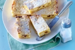 Ko je pecivo pečeno, ga odstranimo iz pečice in pustimo, da se ohladi. Ohlajeno potrosimo s sladkorjem v prahu, narežemo na kose in postrežemo.