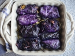 Ponudimo samostojno z gostim koruznim kruhom ali s polento, kuskusom, proseno kašo, pire krompirjem. Če je treba, sarme dosolimo s sojino omako.