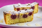 Odcedimo višnjev kompot in višnje potresemo po testu. Pečemo v ogreti pečici pri 200° C pribli??no 30 minut.