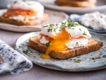 4. Poširano jajce je treba nekam posaditi, zato najprej popečemo toast in nanj nanesemo žlico zrnatega sira. Sledi rezina omamnega dimljenega lososa, na katerega pa že spada naš poširanec. Posujemo ga s soljo, poprom in drobnjakom.