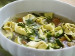 Naredimo vnaprej: Bistro mesno juho imate od nedelje, kajne? To bo moralo zadoščati, ker tortelini bi se razkuhali … Ali pa, to bi šlo, skuhajte juho brez njih vnaprej.