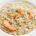 Rižota s škampi ali škampova rižota je topla predjed, lahko pa tudi lažja glavna jed; razdelimo jo na segrete krožnike in ponudimo z izbrano sezonsko (mešano) solato ter s kozarcem belega vina, kakršnega smo uporabili pri kuhanju.