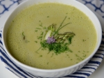 Juho stresemo v blender, dodamo žlico moke in zmešamo. Precedimo nazaj v lonec, če je treba, razredčimo z vodo ali rastlinsko smetano za kuhanje, dodamo vršičke, zavremo in takoj odstavimo.