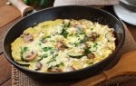 Jajca ubijte v posodico in jih razžvrkljajte. Prelijte jih po praženih gobah in mešajte toliko časa, da zakrknejo.
