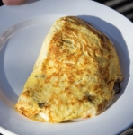 Sveže pečeno omleto potresite s preostankom sira, narežite na kose in servirajte na krožnik ter postrezite.