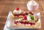 3. Zmešajte skuto s sladkorjem in vaniljevim sladkorjem, jajcem in pudingom v prahu. Pečeno testo vzemite iz pečice, odstranite fižol in peki papir. Po testu razporedite skutni nadev. Obložite z malinami in posujte z drobljencem, pripravljenim iz moke, sladkorja in masla.