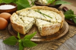 4. Testo vzamemo iz pečice, namažemo z nadevom, poravnamo in potresemo z zdrobljeno feto (če je nimamo, lahko uporabimo običajen riban sir). Vse skupaj pečemo še od 35 do 45 minut.