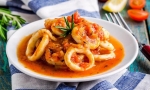 3 Na zmernem ognju dušimo nekaj minut, dodamo majaron in počasi dolivamo paradižnikovo omako. Na nizki temperaturi pustimo vreti, dokler se omaka ne zgosti in kalamari omehčajo. Čisto na koncu dodamo še sesekljan peteršilj.