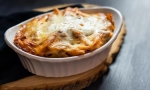 5 V večji pekač stresemo testenine, dodamo mleto meso, bešamel in vodo, ki smo jo prihranili od kuhanja testenin. Dobro premešamo, po vrhu posujemo sveže nariban parmezan in pečemo v pečici, ki smo jo predgreli na 180 °C približno 15 minut.