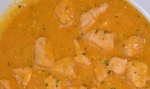 700 g piščanca brez kosti 1 žlica oljčnega olja 1 žlica masla 2 dl sladke smetane 1 čebula 3 stroki česna 1 dl tople piščančje osnove sol poper 1 žlička mlete rdeče paprike pekoča paprika po okusu 1 žlička kurkume sesekljan peteršilj – šopek majhen šopek drobnjaka