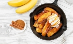 Dodamo cimet, premešamo in dodamo polovice banan. Na vsaki strani banane pečemo cca. minuto in pol. Če imamo rum, ga nekaj kapljic dodamo med pečenjem.