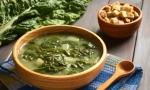 Čebulo in česen olupimo in drobno nasekljamo. V večjem loncu segrejemo oljčno olje in na njem pocvremo najprej čebulo, ko se ta zmehča, pa še česen. Ko česen zadiši, dodamo narezana stebla zelene in dušimo približno pet minut, da spustijo vodo.
