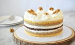 Na orehov nadev položimo drugo plast svetlega biskvita, ga z rokami nežno pritisnemo ob kremo in navlažimo. Premažemo ga z ostankom skutine kreme in torto damo v hladilnik za vsaj 6 ur, najbolje čez noč.