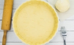 Razvaljano testo previdno prestavimo v pekač – najlažje to naredimo kar z valjarjem. Nanj ovijemo testo in ga hitro prenesemo nad pekač. Z rokami ga pritisnemo na dno in oblikujemo rob. Odvečno testo odrežemo. Testo mora biti enakomerno debelo približno 1/2 centimetra.