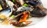V lonec z omako stresemo preostale drobtine. Dobro premešamo. Omako kuhamo še 1 do 2 minuti, potem pa jo polijemo po školjkah. Jed jemo z rokami, ob njej postrežemo svež kruh. Dober tek!