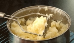 Nato ga zmečkate, dodate maslo, zmečkate, dodate toplo mleko, kislo smetano in mešate, dokler ni penasto, prijetno in homogeno.