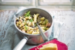 Zavremo velik lonec osoljene vode in v njej kuhamo testenine 1 minuto manj, kot je navedeno na zavitku. Odcedimo jih in prihranimo skodelico vode od kuhanja, testenine pa pustimo v cedilu.