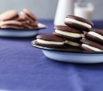 Na polovico temnih biskvitkov z majhnim okroglim nastavkom premera 8 do 10 mm nabrizgamo belo kremo in jih z drugo polovico temnih biskvitkov sestavimo v sendvičke. Whoopiji se v nepredušno zaprti posodi v hladilniku ohranijo do 5 dni.