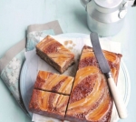 Pečemo 45 minut do 1 ure, da lesena palčka, ki jo zapičimo v testo, ostane skoraj čista. S to leseno palčko naredimo luknje po celotni površini kolača tako, da jo zapičimo samo do polovične globine testa. Luknje prelijemo s preostalim sirupom in počakamo nekaj minut, da ga biskvit popije. Nato kolač previdno zvrnemo iz modla tako, da je spodnja stran zgoraj. Prelijemo še z malo sirupa in še toplo postrežemo.