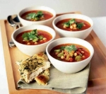 Ogenj povečamo in dodamo juho, paradižnik ter čičerko. Vse skupaj izdatno začinimo s sveže mletim črnim poprom. Kuhljamo 8 minut, nato pa vmešamo še bob in limonov sok. Kuhamo še 2 minuti, nato pa po želji začinimo s soljo in poprom. Posujemo z limonovo lupino in koriandrom ali peteršiljem.