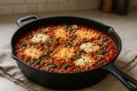 Zelenjavna lazanja v ponvi je najboljša sveže pripravljena, še rahlo vroča, s kosom hrustljavega kruha in zeleno solato ob strani. Jed prinaša občutek, kot bi pojedli pravo lazanjo, a brez težkega občutka po obroku.