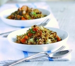 Pilav z bučo, gobami in gorgonzolo