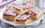 Pečeno pecivo ohladite, potem pa ga narežite na kose, potrosite s sladkorjem v prahu in postrezite.