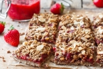 Približno dve tretjini pripravljene mase stresemo v pekač in jo z dlanjo dobro pritisnemo ob podlago, da dobimo enakomerno debelo osnovo, na katero namažemo čija marmelado. Po vrhu potrosimo preostanek ovsene zmesi in jo nežno potlačimo, da se sprime.