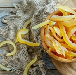 Limone operemo in olupimo. Olupke razrežemo na približno 1cm debele trakove.