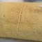 Ko je biskvit pečen, ga odstranimo iz peki papirja in prerežemo na pol, da dobimo dve enaki polovici.