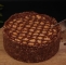 Po vrhu potresite mlete orehe in s cevno vrečko v tankih črtah pokapajte Nutello. Torto hladite vsaj 2 uri, da se popolnoma strdi.