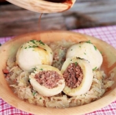 Prekajena gnjat s kislim zeljem in krompirjem iz rimskega lonca
