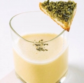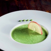Kremna juha iz zelene z ovčjim sirom in kruhki z bučnim oljem