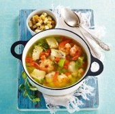 Zelenjavna juha s popečenimi kruhovimi kockami