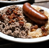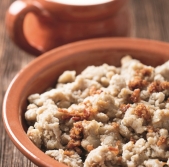 Ajdovi žganci s kislim zeljem in klobaso