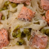 Široki rezanci z lososom