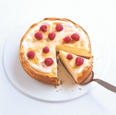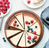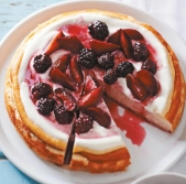 Limonova sirčkova torta s pečenimi slivami in robidnicami