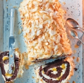 Rulada iz čokoladnega biskvita s pasijonko in kokosom