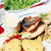 Mesne ruladice s testeninskim nadevom in poprovo omako