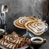 Čokoladna torta s pudingom in palačinkami