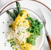 Kremna juha iz zelene z ovčjim sirom in kruhki z bučnim oljem