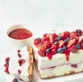 Bela čokoladna rezina s kremnim sirom in jagodičjem