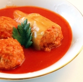 Mesne ruladice s testeninskim nadevom in poprovo omako