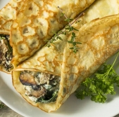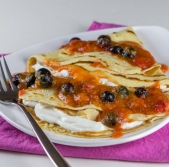 Ajdove palačinke z jajcem rukolo in češnjevimi paradižniki