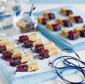 Bela čokoladna rezina s kremnim sirom in jagodičjem