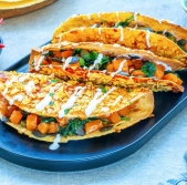 Jajca v koruzni tortilji s slanino, paradižnikom, čebulo in sirom (Burrito)