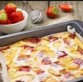 Skutna torta za jagodami in čokoladnim biskvitom – brez glutena
