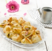 Šunkini zvitki s sirnim namazom, hrenom in orehi