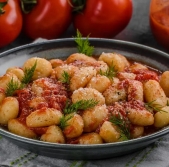 Zapečeni njoki v paradižnikovi omaki z mascarponejem